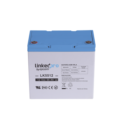 Batería 12 Vcc / 55 Ah / UL / Tecnología AGM-VRLA / Vida útil promedio de 5 años / Para uso en equipo electrónico, Alarmas de Intrusión / Incendio/ Control de acceso / Video Vigilancia / T2