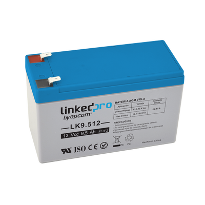 Batería 12 Vcc / 9.5 Ah / UL / Tecnología AGM-VRLA / Para uso en equipo electrónico, Alarmas de Intrusión / Incendio/ Control de acceso / Video Vigilancia / Terminales F1 y F2.