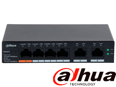 El DAHUA CS4006-4GT-60 es un switch PoE diseñado para redes modernas. Integra 6 puertos Gigabit, de los cuales 4 soportan PoE con un presupuesto de energía total de 60 W, permitiendo alimentar dispositivos como cámaras IP. Sus 2 puertos Uplink aseguran conectividad eficiente. Su gestión en la nube mediante DoLynk Care facilita el monitoreo remoto y la configuración avanzada. Admite PoE extendido hasta 250 metros, ideal para aplicaciones de largo alcance. Con una carcasa metálica robusta y velocidad de conmutación de 12 Gbps, este switch garantiza fiabilidad y rendimiento en entornos exigentes como vigilancia, oficinas o instalaciones comerciales.
