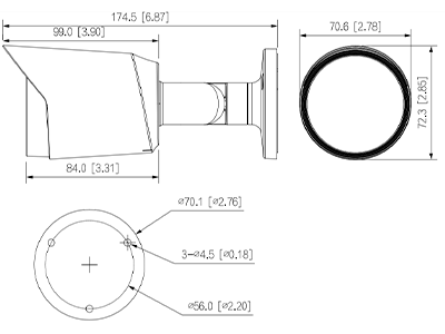 - Dimensiones: 174,5 mm × 70,6 mm × 72,3 mm