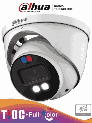 DAHUA DH-HAC-ME1809HN-A-PV – Camara Domo TiOC 4k/ Disuasión Activa/ Iluminador Dual Inteligente + FullColor/ Estrobo con Luz Roja y Azul/ Lente de 2.8mm/ 106 Grados de Apertura/ 40 Metros de IR y Luz Visible/ Microfono Integrado/ IP67/