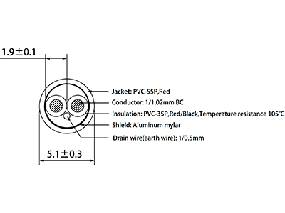 - Diámetro exterior: 5,1 ± 0,3 mm