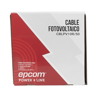 1 x Carrete de 50 m Cable Fotovoltaico Rojo / 6mm² (10AWG) Cobre Tipo PV, 1000 / 2000 V 120 °C.