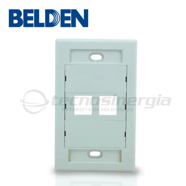 ADAPTADOR MODULAR KEYCONNECT BELDEN AX102291 3 PUERTOS COMPATIBLE CON JACKS CAT6A CAT6 CAT5E FIBRA Y COAXIAL COLOR BLANCO USO INTERIOR MATERIAL PLÁSTICO UL94V