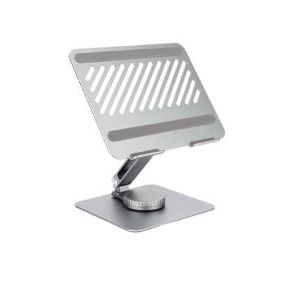 Soporte Giratorio de Aluminio para Laptop | Giratorio 360° | Función de Bloqueo | Soporta Laptops de 10 a 17.3”| Capacidad de Carga 5Kg | Excelente Estabilidad | Diseño Ergonómico | Altura y Angulo Ajustable | Plegable y Port&