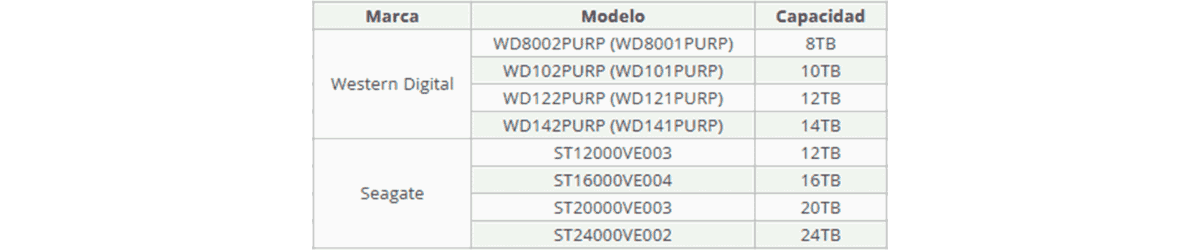 Lista de unidades de disco duro compatibles