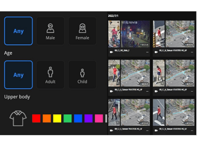 La búsqueda de atributos utiliza personas y vehículos como criterios de búsqueda utilizando múltiples características (p. ej., sexo, grupo de edad, color de la ropa o del automóvil, tipo de vehículo, etc.) para encontrar de manera rápida y precisa a la persona o el vehículo de interés.