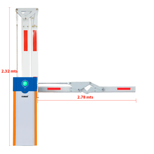 El brazo articulado de 180 grados, está hecho de aleación de aluminio de alta resistencia. El brazo incorpora una película reflectante que tiene la función de advertencia. El brazo cuenta con una ranura en la parte superior que sirve para la instalación de la cubierta para la tira LED o la goma de caucho en color negro que sirve de protección para la barrera y los vehiculos.