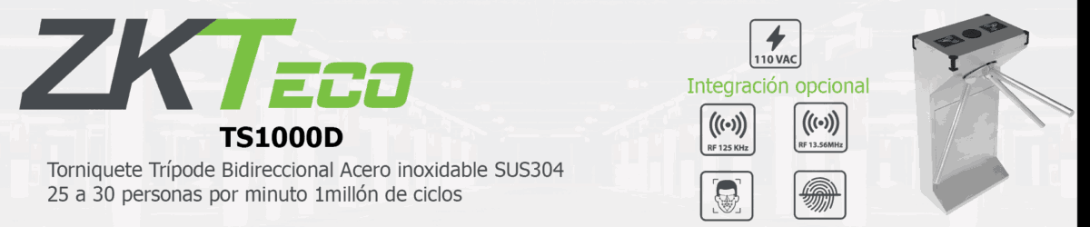 - Versatilidad sin Límites: El TS1000D es compatible con una amplia gama de accesorios y sistemas de identificación, incluyendo lectores de proximidad, huella digital, reconocimiento facial y QR, ofreciendo flexibilidad para adaptarse a las necesidades específicas de cada entorno.