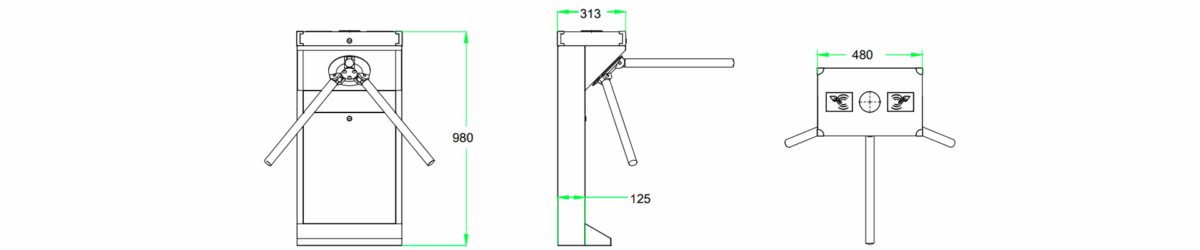 - Experiencia de Usuario Intuitiva: Equipado con pictogramas LED, el TS1000D guía a los usuarios de manera clara y sencilla, facilitando el flujo peatonal en ambas direcciones con un alto rendimiento.
